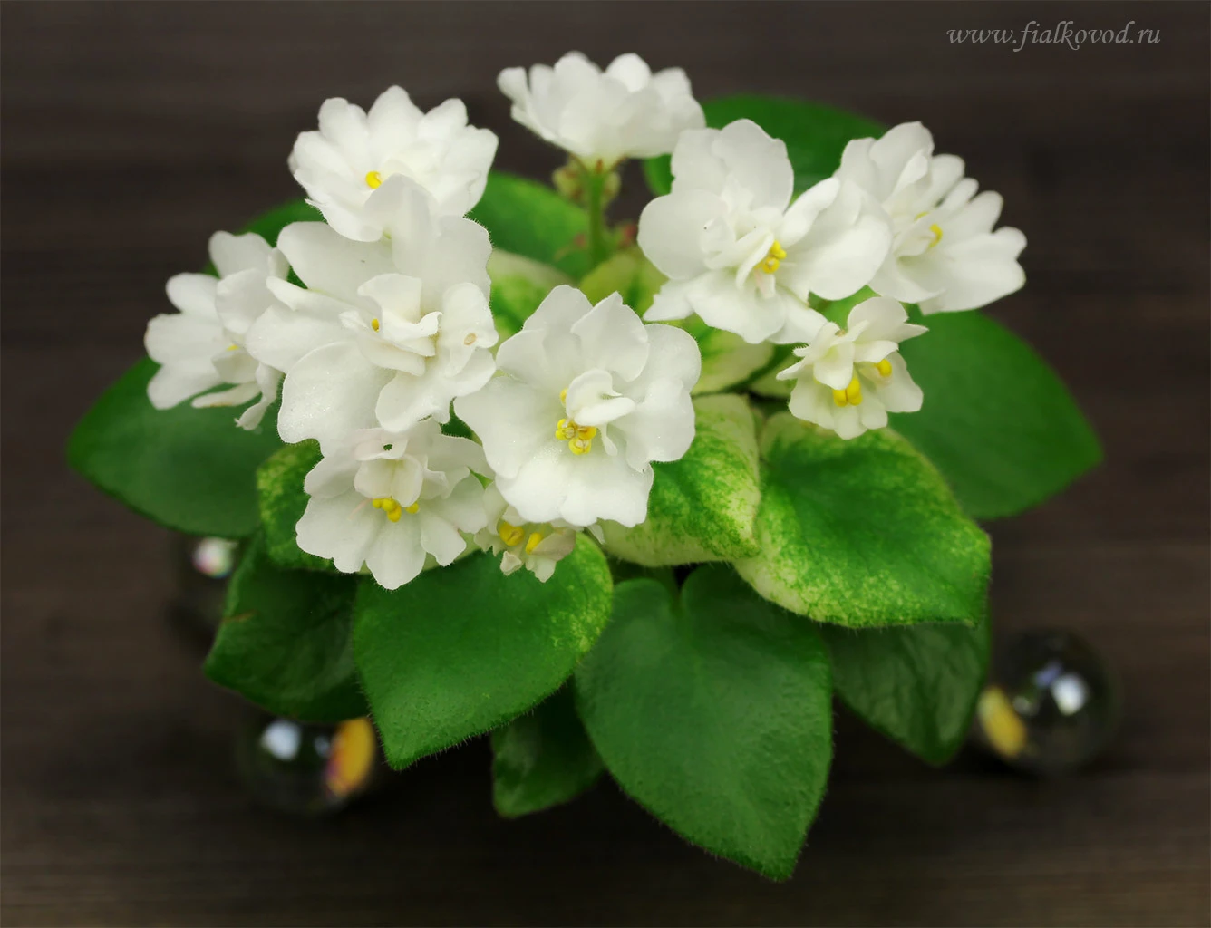 Лимонная кроновая пестролистность и букет белых цветов оригинальной формы: