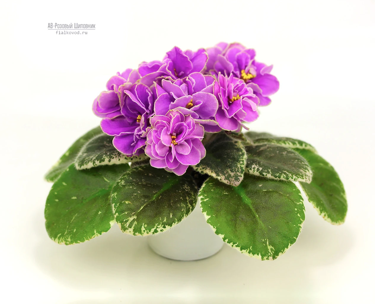Крупные многолепестковые фуксиево-розовые волнистые звезды с бело-зеленой каймой: