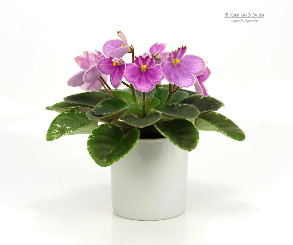 Миниатюра Ф-Костюм Зайчика с цветами оригинального окраса. У них полоска на двух верхних лепестках и сеточка на нижних: