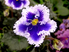 Селекционер: Holtkamp Цветок: простой фиолетовый двухцветный, оборчатый/более темный глазок. Розетка: темно-зеленая, плоская, овальная, блестящая/с пурпурной изнанкой. | Детка, 300 руб. |