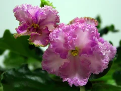 Селекционер: Пугачева Т. Цветок: Очень крупные простые и полумахровые, волнистые, сиреневые цветы. Лепестки украшены пурпурной каймой напыления. Обильное и продолжительное шапочное цветение. Розетка: Аккуратная розетка из удлинённых зелёных листьев. | Лист, 120 руб. |