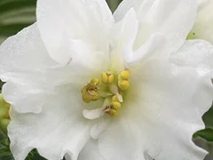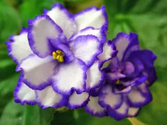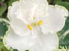 Селекционер: P. Tracey Цветок: Крупные полностью махровые гофрированные белые цветы с фиолетовым глазком и каймой по каждому лепестку. Розетка: Зеленый лист. | Детка, 300 руб. |