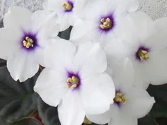 Селекционер: Holtkamp, H. Цветок: Белые махровые цветы-розочки с голубым центром и тонкой голубой волнистой каймой по краю лепестков. Супер обильное цветение. Розетка: Компактная розетка из светлых листьев.2019г. | Лист, 200 руб. |