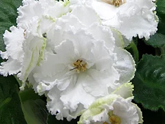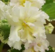 Селекционер: Н-Бердникова Цветок: Крупные белые с синим центром полностью махровые цветы с волнистыми краями лепестков Розетка: Светло-зеленые стеганые листья | Лист, 120 руб. |