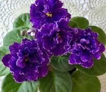 Селекционер: Репкина С. Цветок: Тёмно-синие, густо-махровые, огромные (7см), объёмные цветы с гофрированными краями. Мощные цветоносы, продолжительное цветение. Розетка: Тёмно-зелёная гофрированная листва. | Лист, 180 руб. |