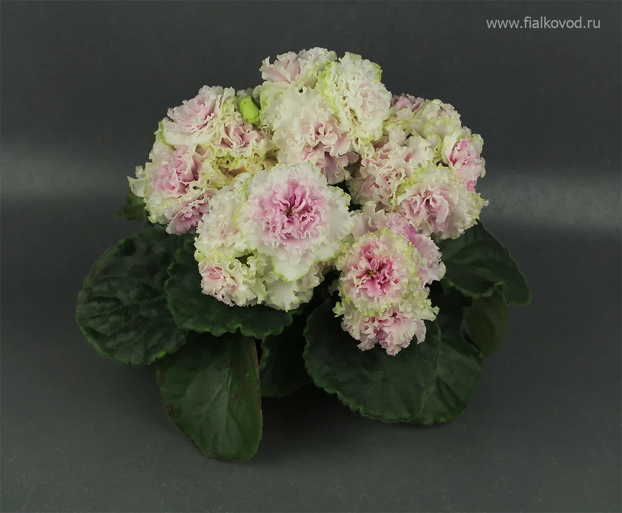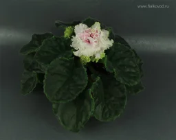 Цветок: Гофрированные махровые бело-салатовые звезды с розовым глазком.