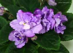 Цветок: Крупные густо-махровые пушистые дымчато-сиреневые цветы с ярко-фиолетовыми кончиками лепестков (как ушки у кошки).