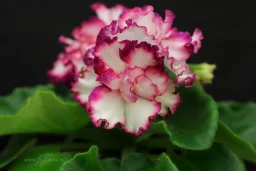 Цветок: Полумахровые белые волнистые анютки с красным краем. Обильное цветение.